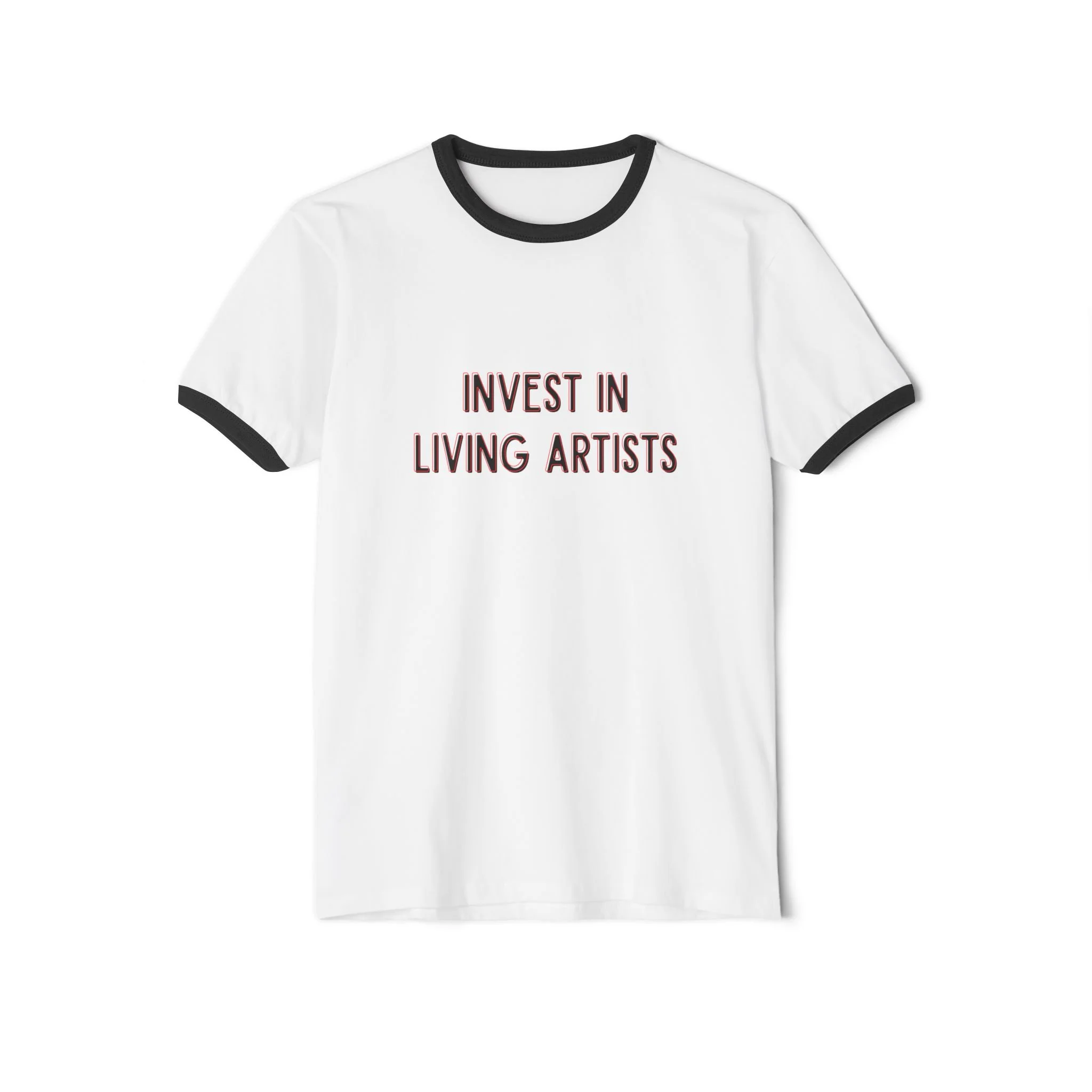 "invest in living artists" - Ringer T-Shirt | Unisex Cotton Tee | Art Lover Gift | Creative Inspiration Apparel | Casual Wear | Gift for Artists